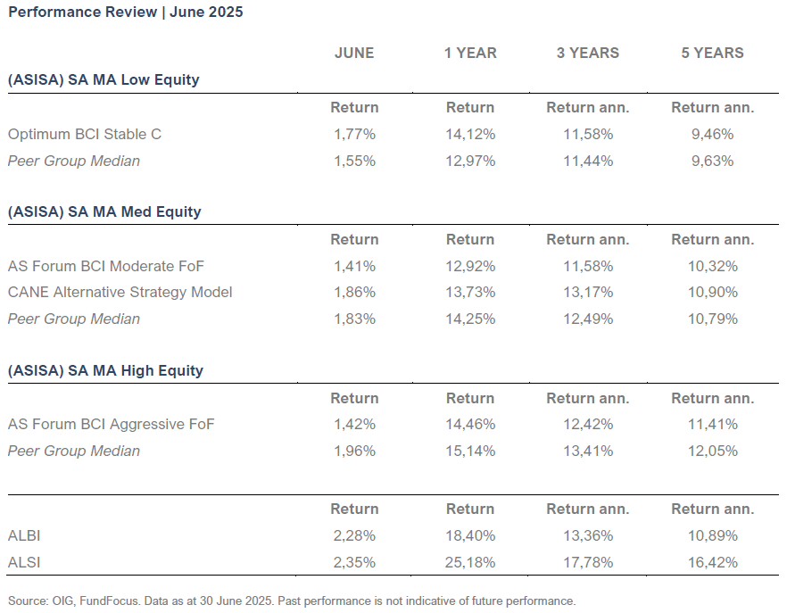 While markets delivered strong gains in the first half of 2025, the path ahead is likely to be more complex. Persistent geopolitical risks, renewed tariff tensions, and shifting global trade dynamics could weigh on sentiment and growth in the months ahead. Inflation appears to be cooling in many regions, but food and energy price volatility remains a risk, particularly for emerging and commodity-driven markets like South Africa.