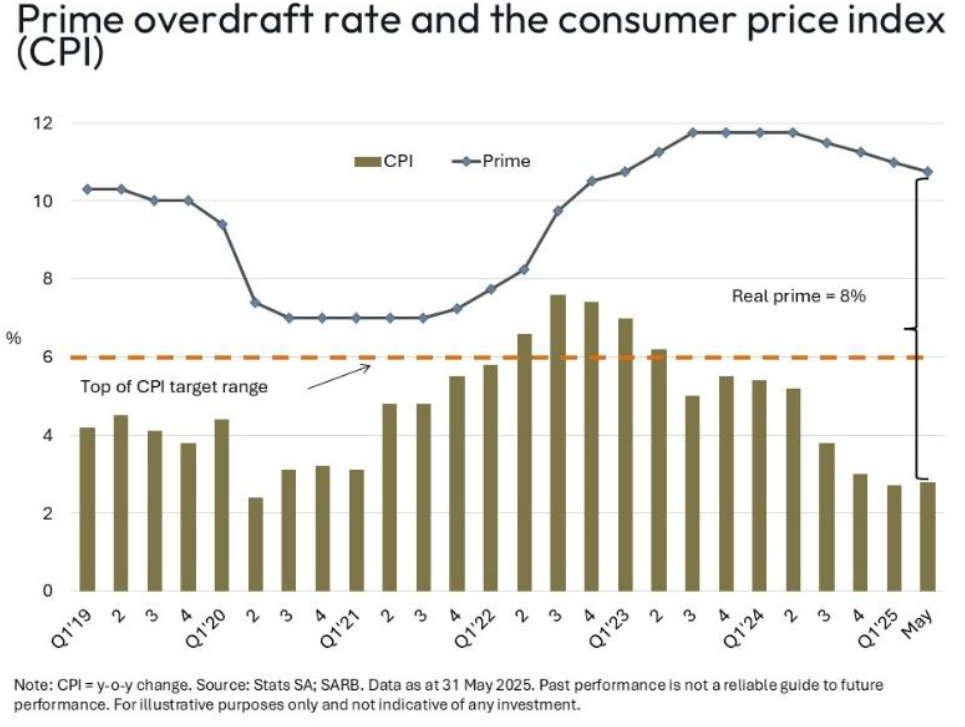 After halting the rate-cutting cycle in March, the Monetary Policy Committee (MPC) of the Reserve Bank lowered the repo rate by 25 basis points at its May policy meeting. The prime overdraft rate of the commercial banks now stands at 10.75%. This is 75 basis points higher than before the Covid-19 pandemic, when the consumer price index (CPI) was around 4.4% and virtually on the nose of the mid-point of the inflation target range (3% – 6%).