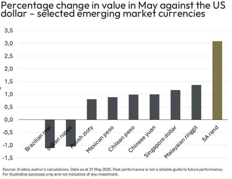 Reasons for the exceptionally strong performance of the domestic currency are not difficult to find. Apart from the low base effect relating to the knock that followed the announcement by US President Donald Trump of high tariffs on a range of South African exports to the US, international trade data for the first four months of the year confirm a healthy South African trade surplus. Furthermore, the financial account of the balance of payments (which includes foreign direct investment flows) has been in surplus for nine consecutive quarters.