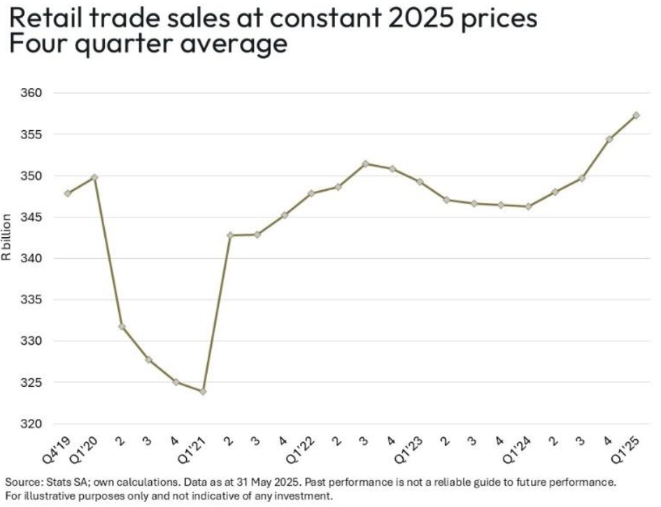 Retail trade sales have been the shining light of otherwise disappointing macroeconomic performance during the first quarter of 2025, posting a real year-on-year increase in sales values of 4.1%. In value terms, South African shoppers spent a whopping R351 billion between January and March, with the fourquarter average reaching a record high of R357.3 billion. On a sobering note, it is clear that retail sales are playing catch-up, as the annual average real increase is merely 0.6% since the first quarter of 2020.
