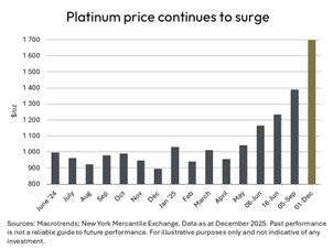 After taking a dip to just below $1,500 per fine ounce on 21 November, platinum bounced back to reach a level of $1,700 on 1 December – its highest price in 12 years.